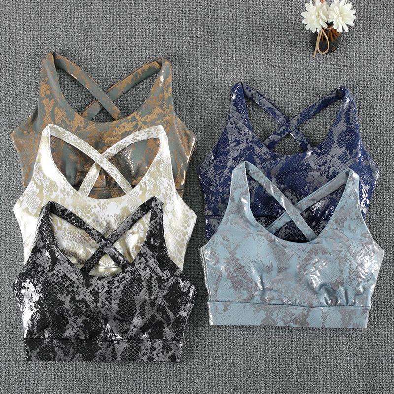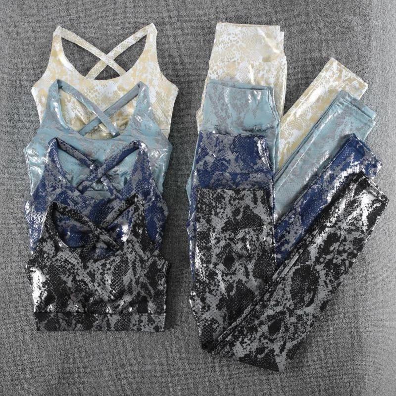 ชุดกีฬาเล่นโยคะสำหรับผู้หญิงชุดออกกำลังกายเล่นฟิตเนสพิมพ์ลายหนังงูสีทอง