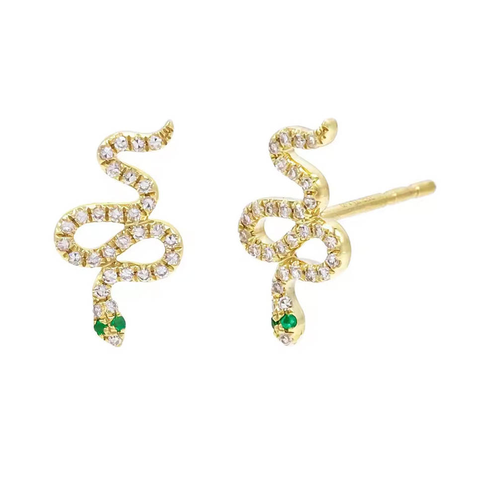 ใหม่ต่างหูหมุดทองรูปงู14K สีเหลืองทองแบบเรียบง่ายเครื่องประดับเงินแท้จากแซมเบียมรกต
