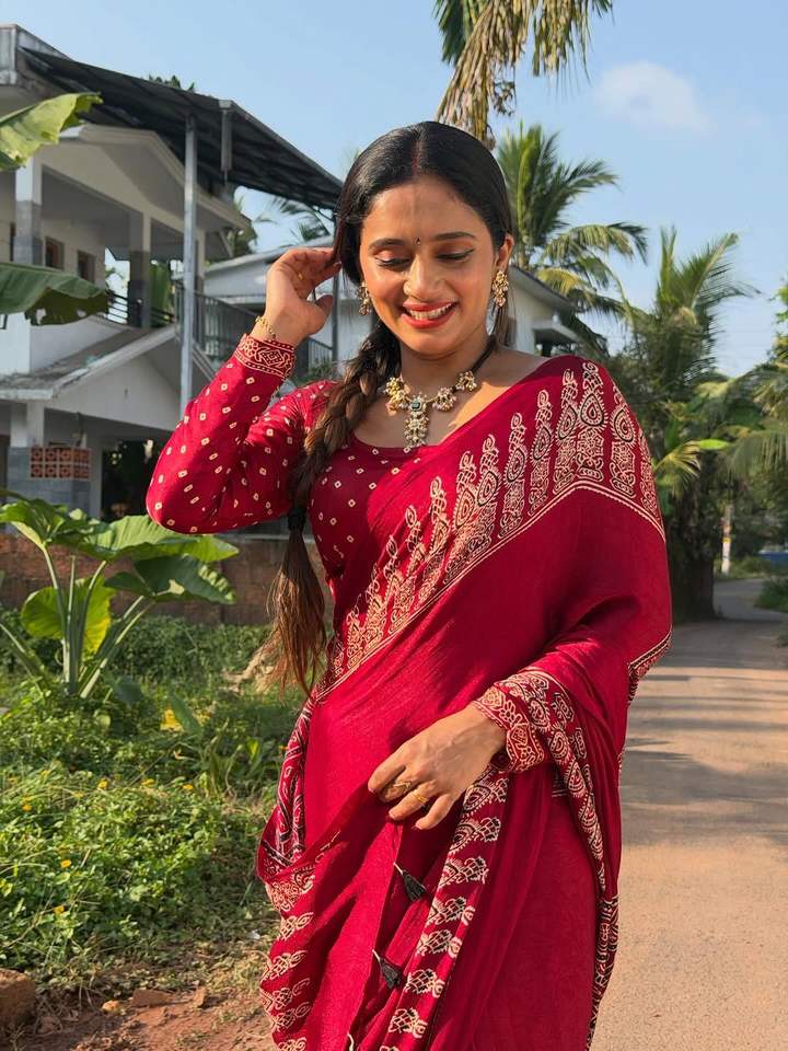 ผ้าไหมกัจจีเนื้อนุ่มแบบใหม่ ลายอัจราค บันเดจ แฟนซี สำหรับผู้หญิงอินเดีย ผลิตในอินเดีย ไม่มีลายพิมพ์ พร้อมส่ง