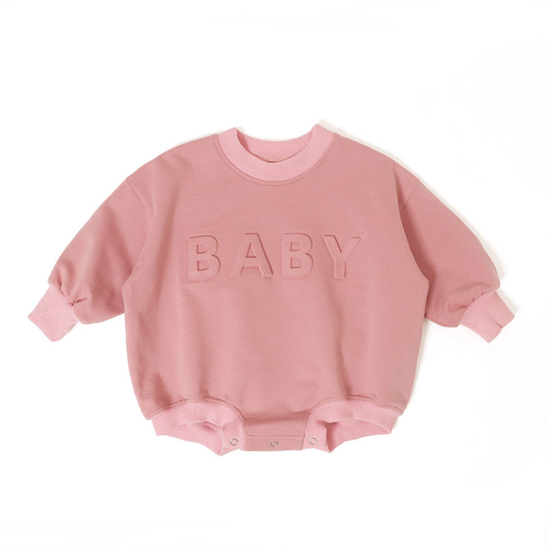 ชุดรอมเปอร์เด็กทารกแขนยาวสีพื้นแบบใหม่ งานปักนูนสามมิติ คอทรงกลม ผ้าฝ้าย ชุดรอมเปอร์เด็กแรกเกิด