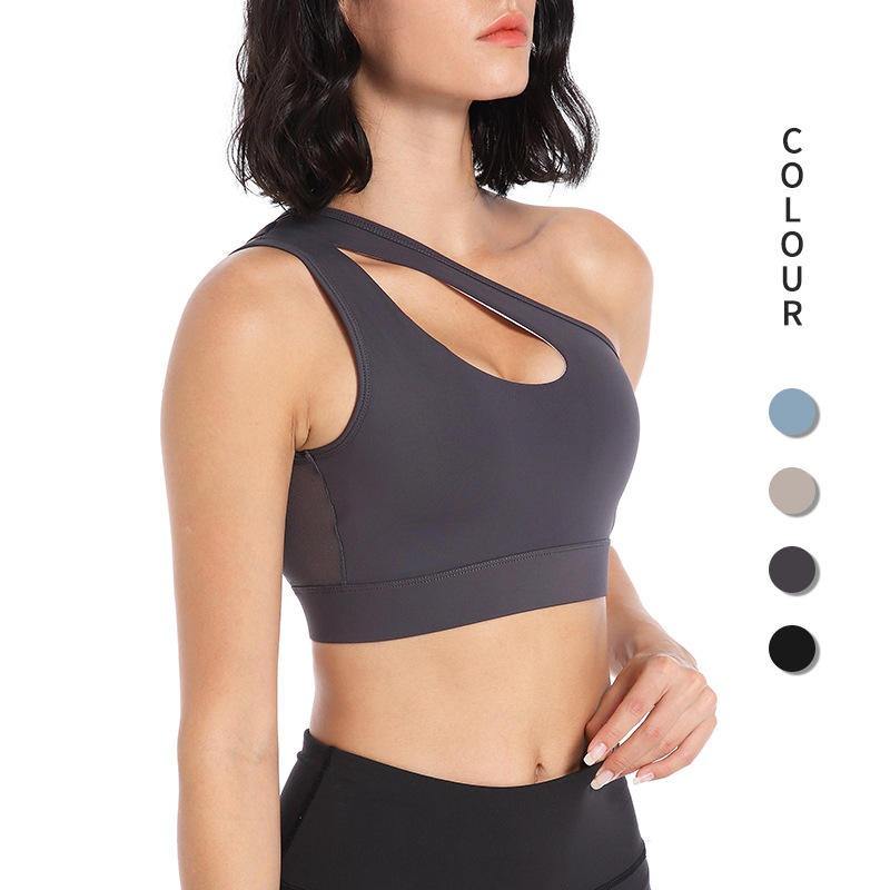 เสื้อชั้นในกีฬาแบบใหม่ สีพื้น ผ้าไนลอน เซ็กซี่ โชว์หลัง คัพเล็ก ยืดหยุ่นสูง กระชับรูปร่าง สายไขว้ เหมาะสำหรับโยคะ สำหรับผู้หญิง