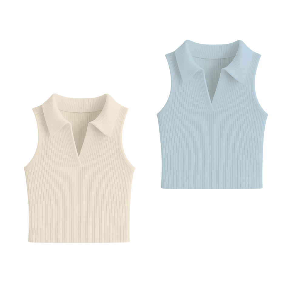 เสื้อครอปแขนกุดมีปกสำหรับผู้หญิงเสื้อผ้าลำลองระบายอากาศน้ำหนักเบา