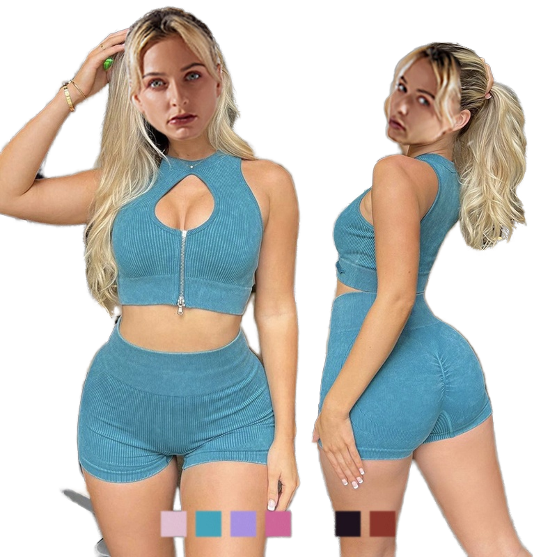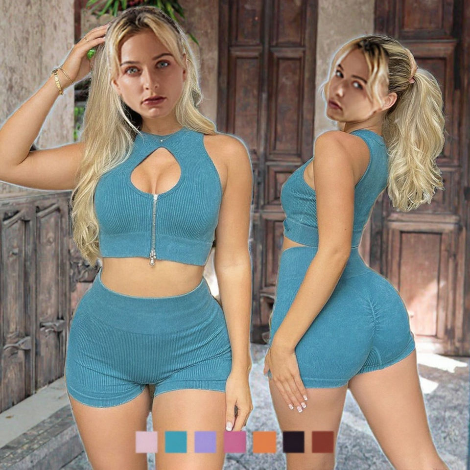 New Solid Eco-Friendly Seamless Matte Sexy Bra & Shorts Set Sleeveless Crop Top High-Waist Butt-Lifting Pants Yoga Activewear