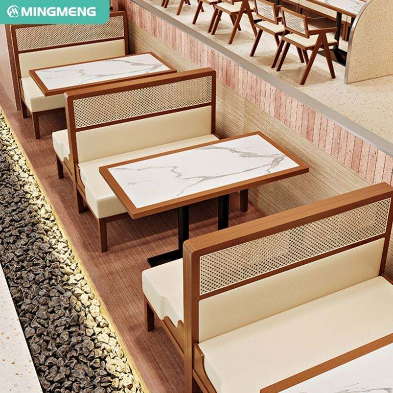 เฟอร์นิเจอร์ร้านอาหารไม้เนื้อแข็งแบบใหม่ โซฟาบูธร้านอาหารสไตล์หรูหราเบาๆ โต๊ะรับประทานอาหาร เก้าอี้ยาว ดีไซน์สำหรับห้องอาหาร