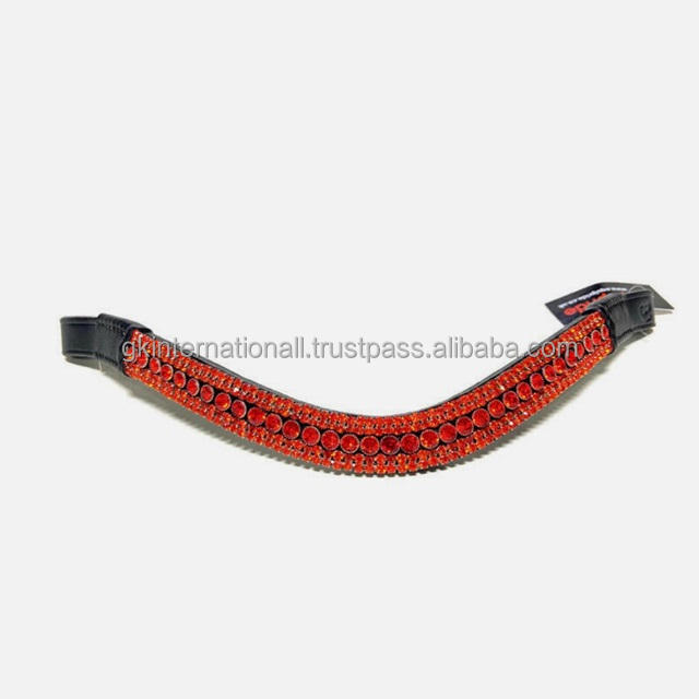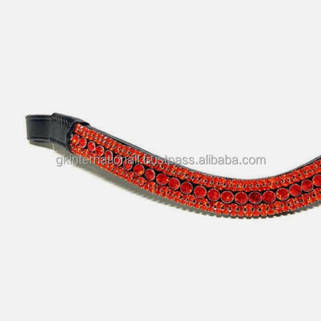 สายคาดคิ้วทรงโค้งสำหรับงานตามสั่งห้าแถวประดับคริสตัลสีแดงสายหนังแฟนซีรูปม้าทั้งชิ้นแบบใหม่