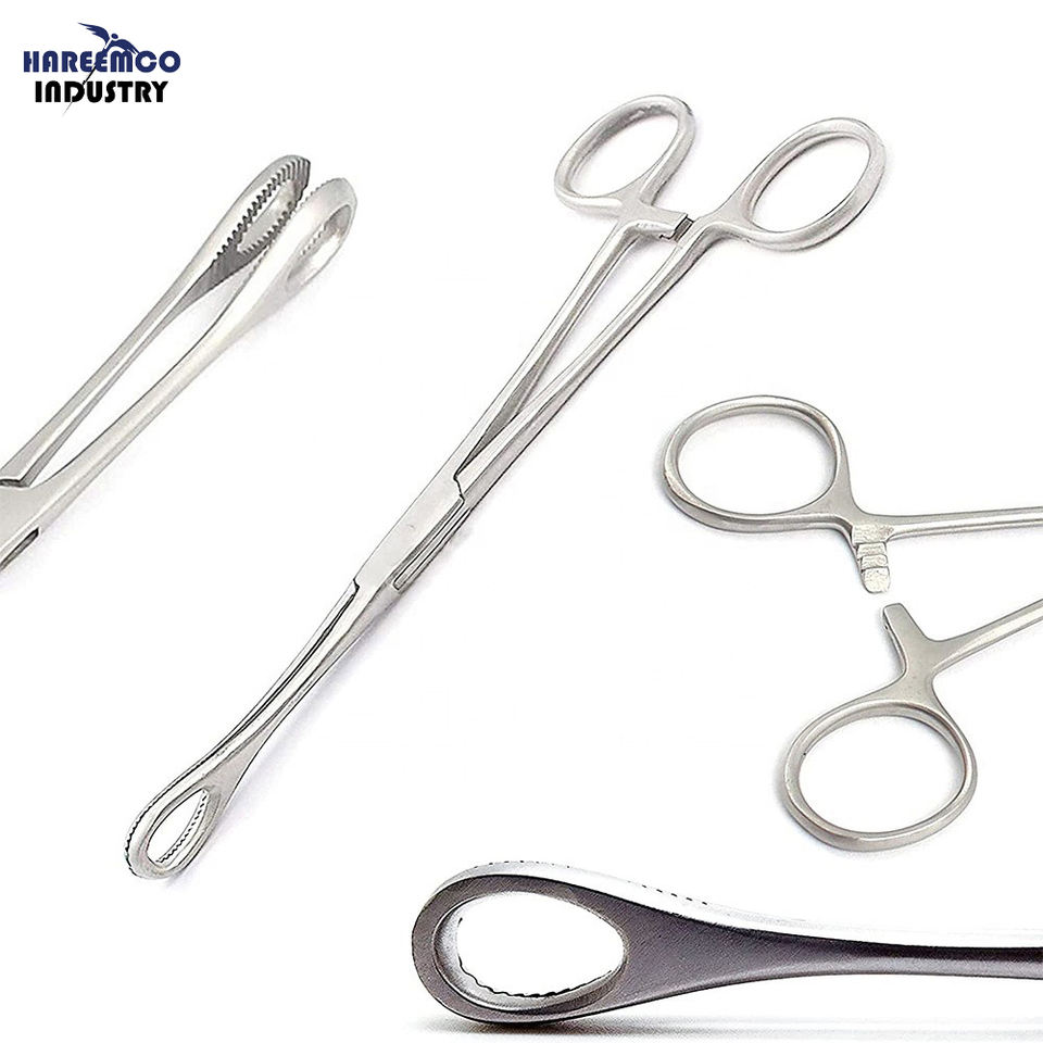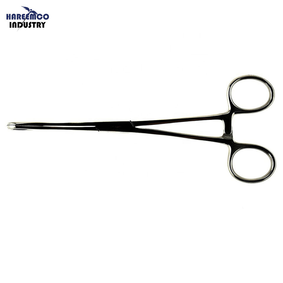 คีมจับฟองน้ำสำหรับผ่าตัดแบบแมนนวลใช้ซ้ำได้คีมหนีบทำจากสเตนเลสแบบปากแหลมโค้งตรงเคลือบสี9.5