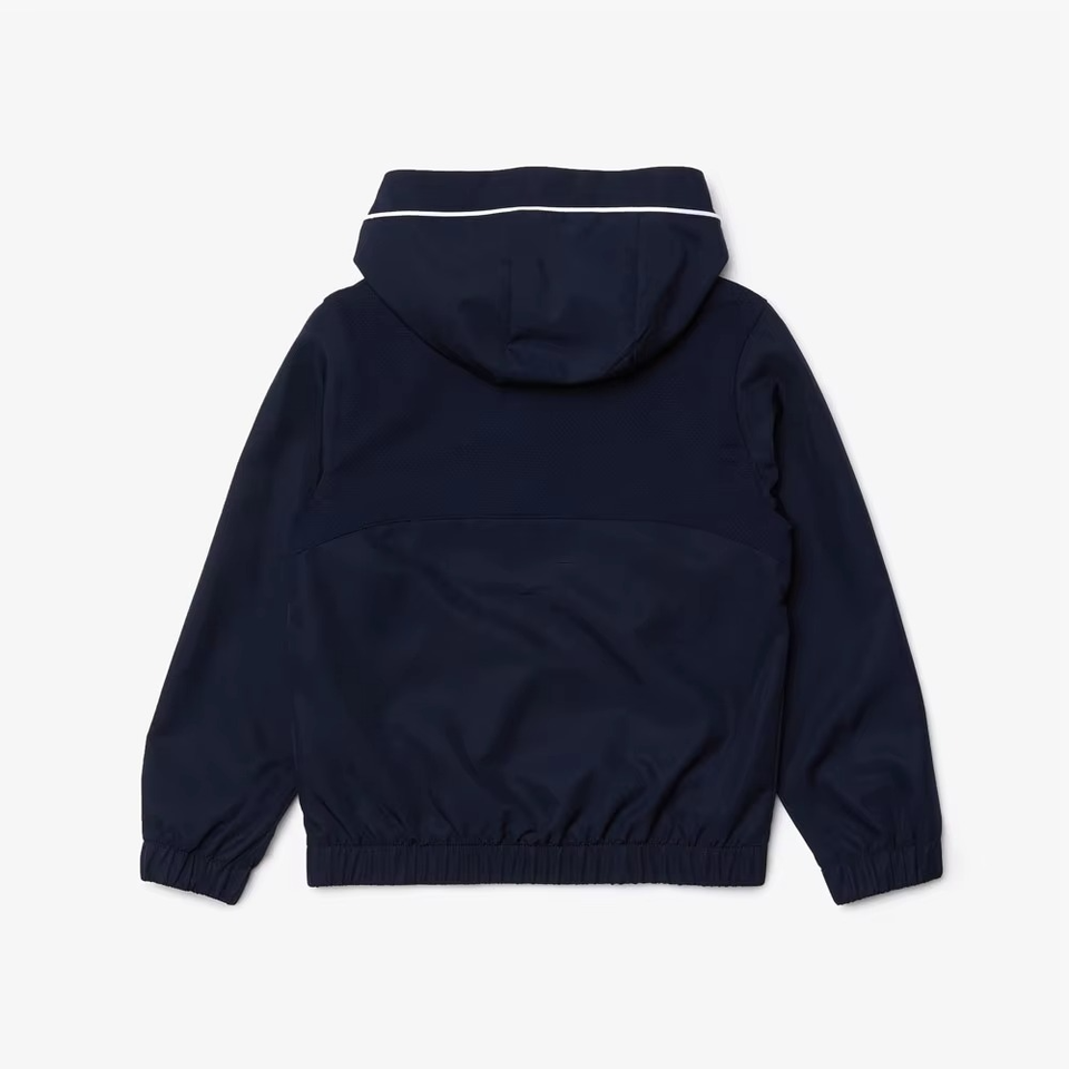 ชุดกีฬามีฮู้ดสำหรับเด็กผู้ชายชุดวอร์มมีซิปสีทึบสวมใส่สบายและระบายอากาศได้ดีใหม่