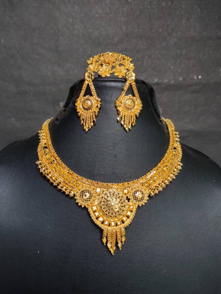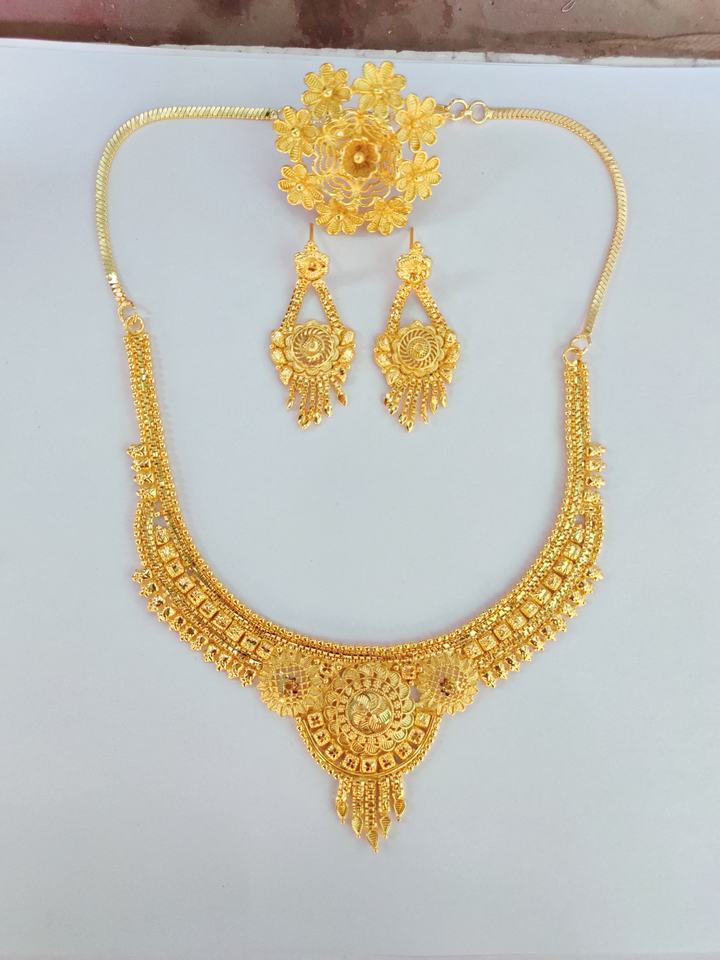 ชุดแหวนต่างหูสร้อยคอพร้อมชุดเครื่องประดับสไตล์หรูหราชุบทอง22K
