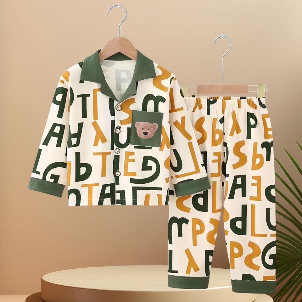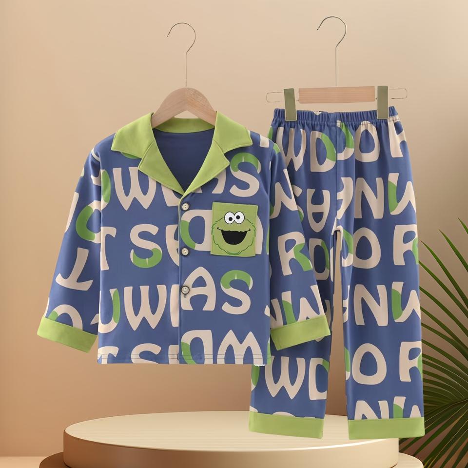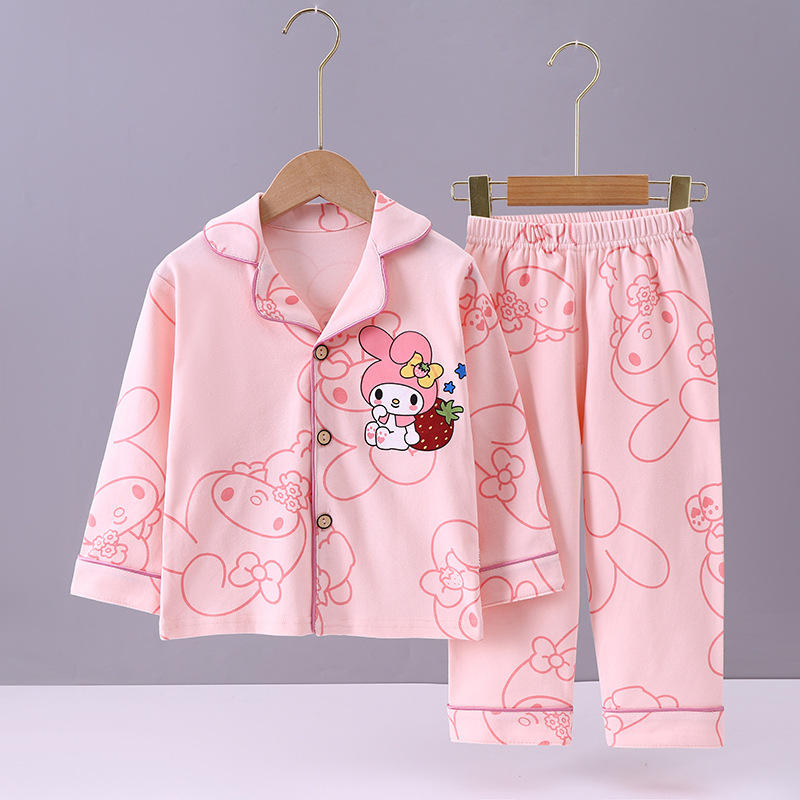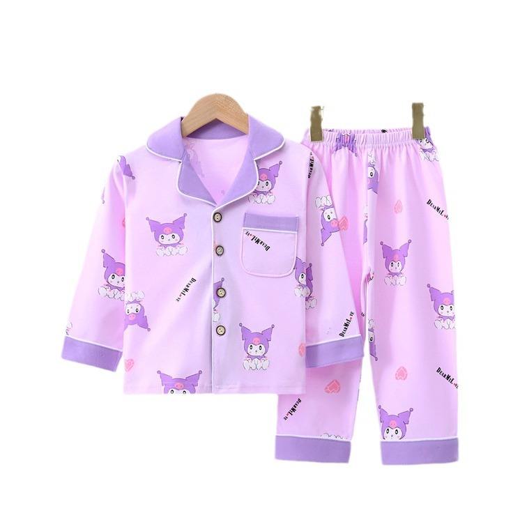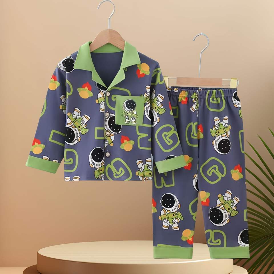 ชุดนอนเด็กผ้าฝ้ายหวีอย่างดี ลายการ์ตูน สำหรับฤดูใบไม้ผลิและฤดูใบไม้ร่วง เสื้อคลุมแขนยาว กางเกงขายาว ชุดนอนใส่สบาย อุ่นๆ สำหรับเด็กวัยเตาะแตะ