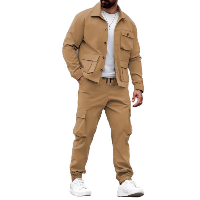แจ็กเก็ตใส่ทำงานแบบย้อนยุคของผู้ชายกางเกงมีกระเป๋าหลายแบบชุดเซ็ตผู้ชายทันสมัยกางเกงลำลองสองชิ้นสำหรับฤดูใบไม้ผลิและฤดูใบไม้ร่วง