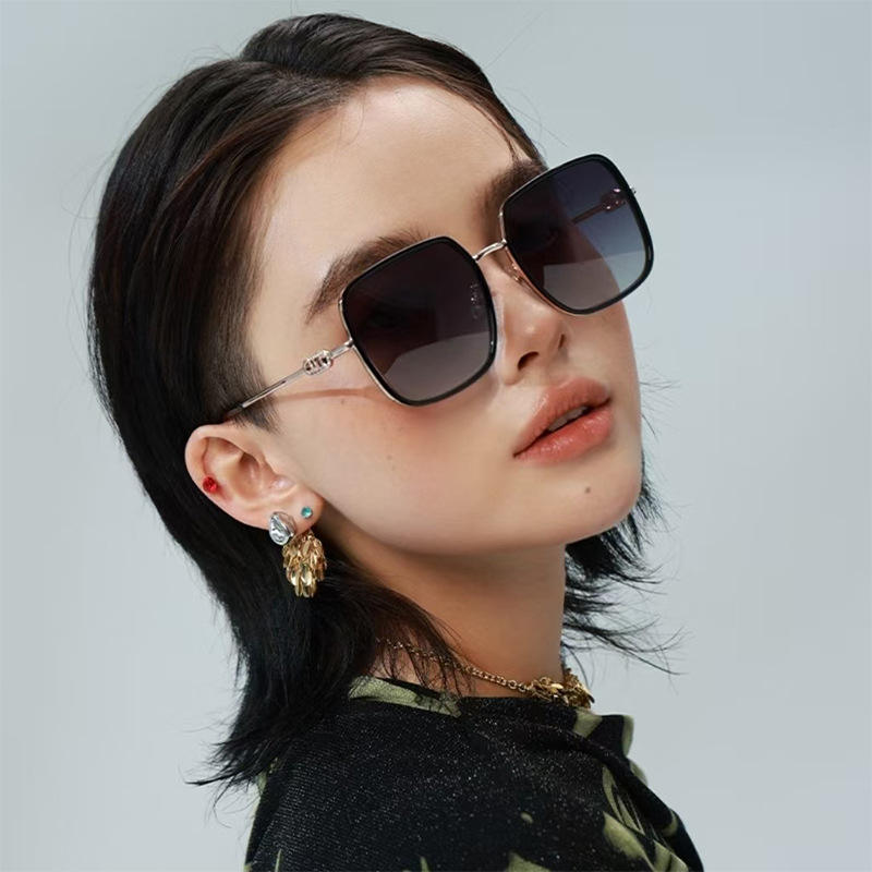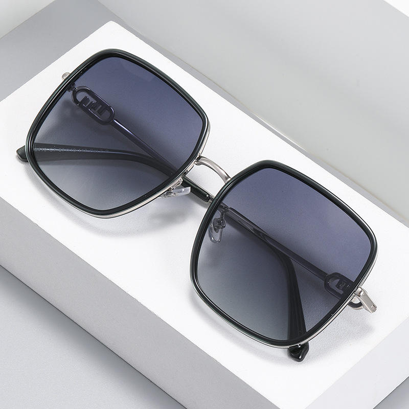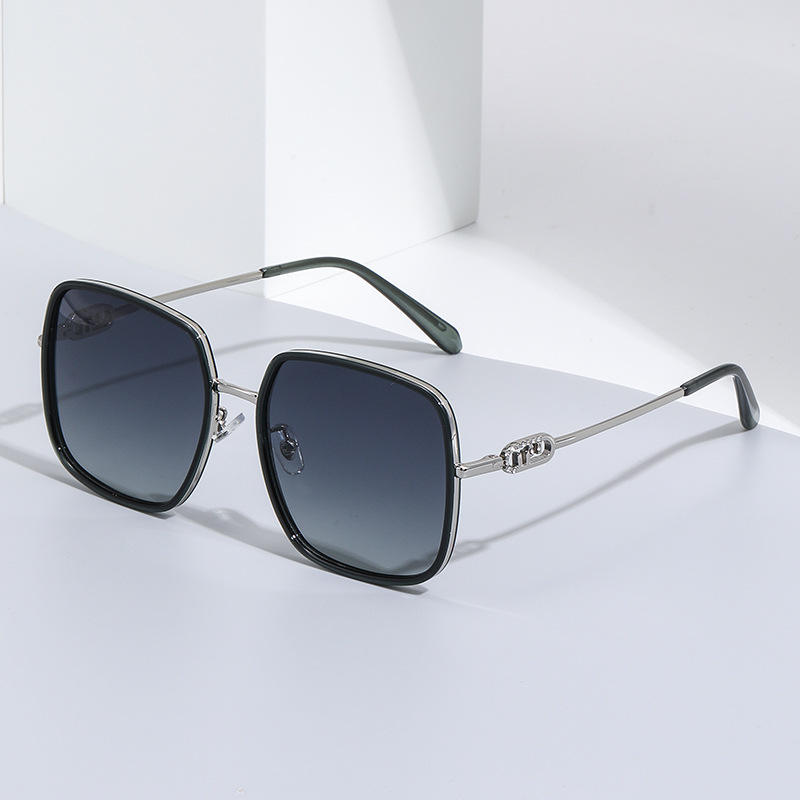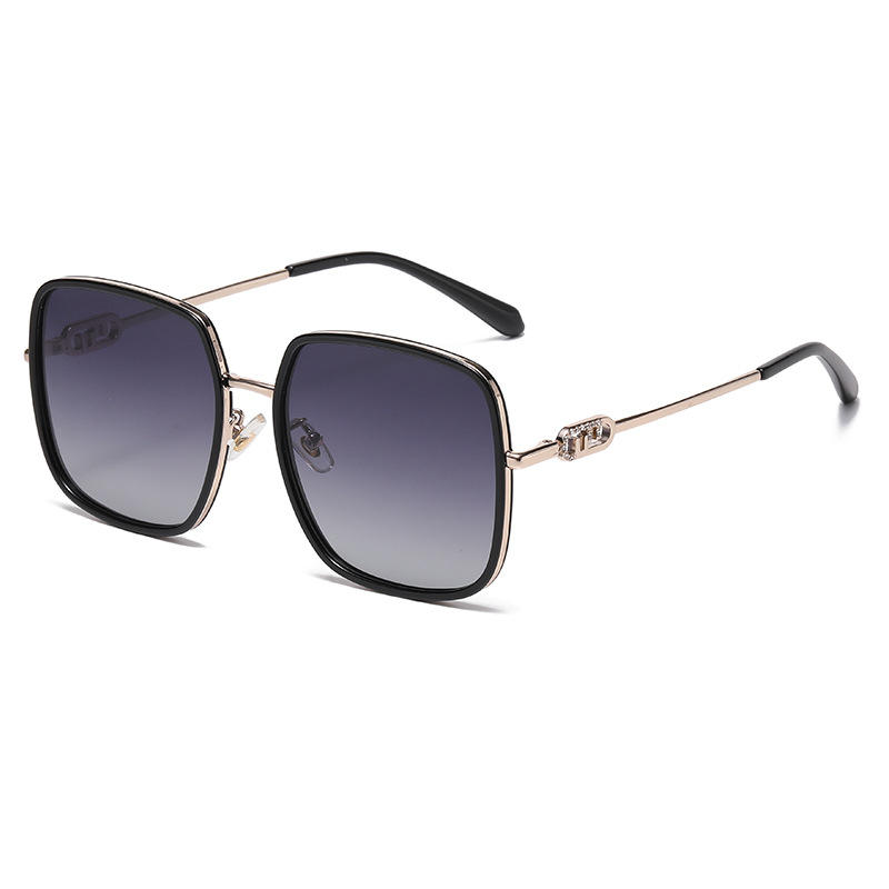 แว่นกันแดดโพลาไรซ์กรอบสี่เหลี่ยมใหม่สำหรับผู้หญิง UV400 เลนส์ TAC กรอบสีดำแฟชั่นป้องกันแสงแดดสวมใส่กลางแจ้ง