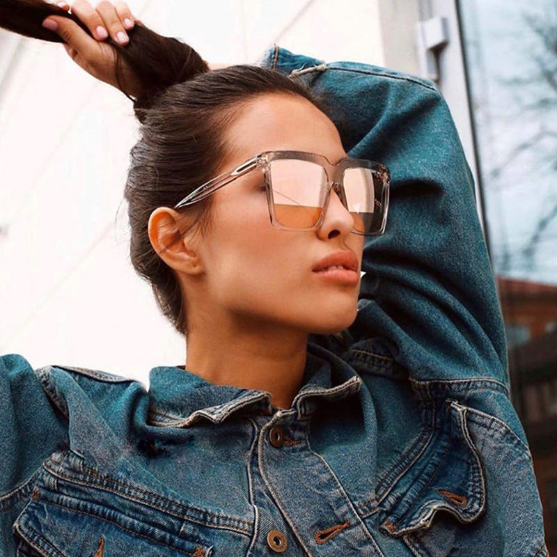 แว่นกันแดดโพลาไรซ์ทรงสี่เหลี่ยมใหม่ UV400 สำหรับผู้หญิง แฟชั่นขนาดใหญ่ สำหรับกิจกรรมกลางแจ้ง ขับรถ กรอบสีดำ เลนส์ PC