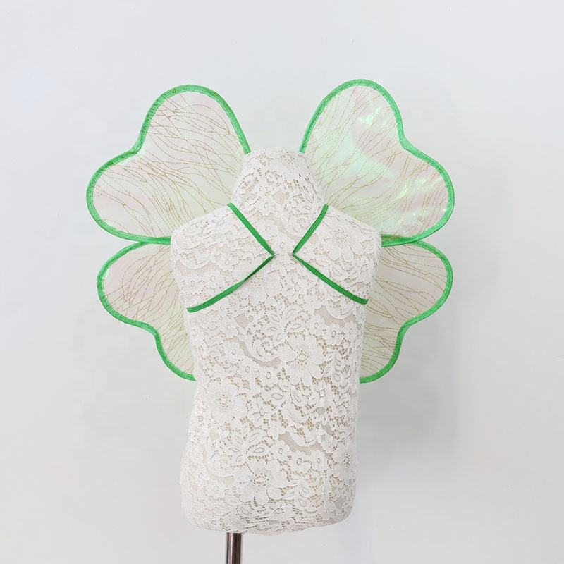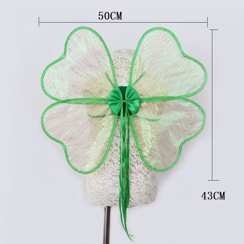อุปกรณ์แต่งหน้าสำหรับงานเลี้ยงรับปริญญาในเดือนรอมฎอน ปีกนางฟ้าผีเสื้อสีเขียวโคลเวอร์ไอริชนำโชค ปีกนางฟ้าตาข่ายสำหรับเด็ก แบบสั่งทำได้