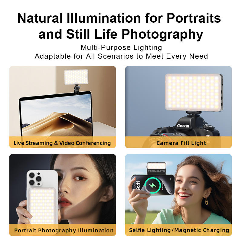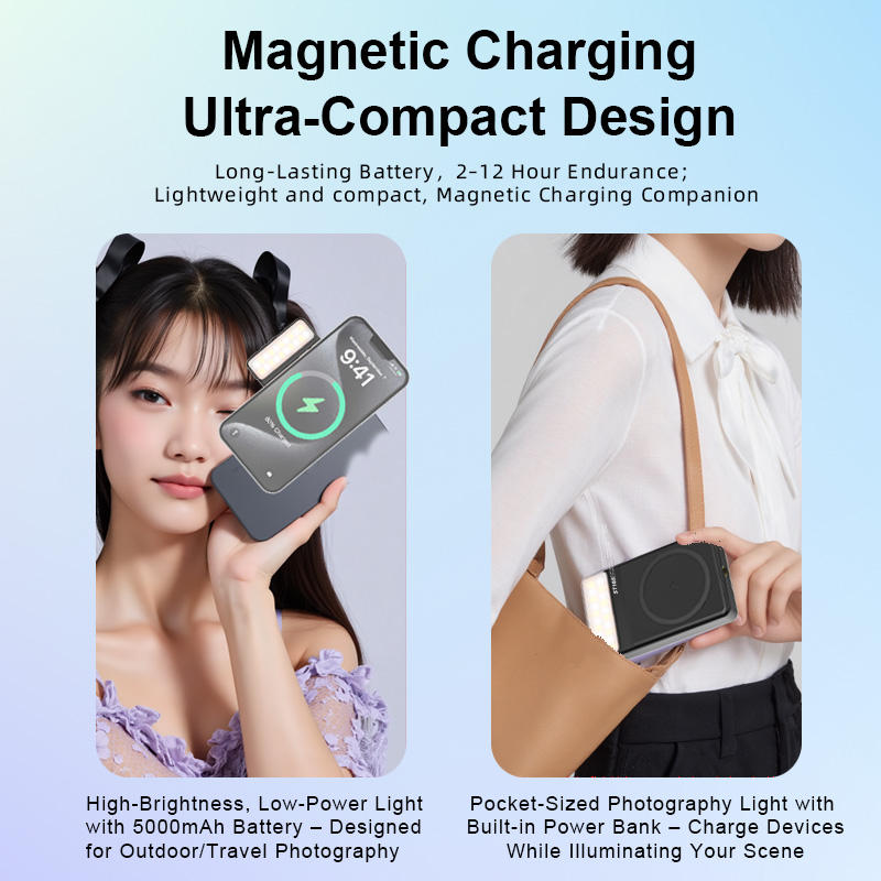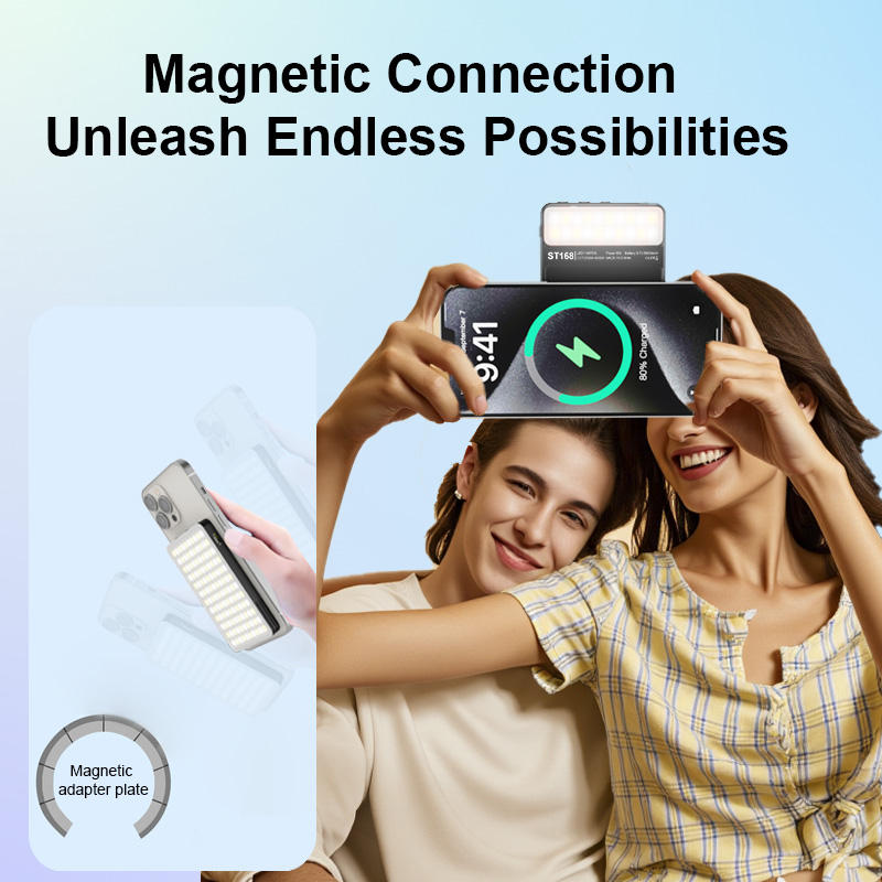 แบตสำรองที่ชาร์จด้วยแม่เหล็ก St168ใหม่พร้อมไฟเติมสองด้านสำหรับกล้องโทรศัพท์ไฟสามสีแบบพกพา
