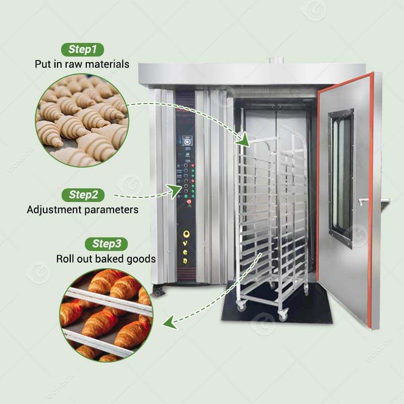 เตาอบพาความร้อนแบบหมุนสแตนเลสสำหรับอบพิซซ่าในเชิงพาณิชย์ความจุขนาดใหญ่