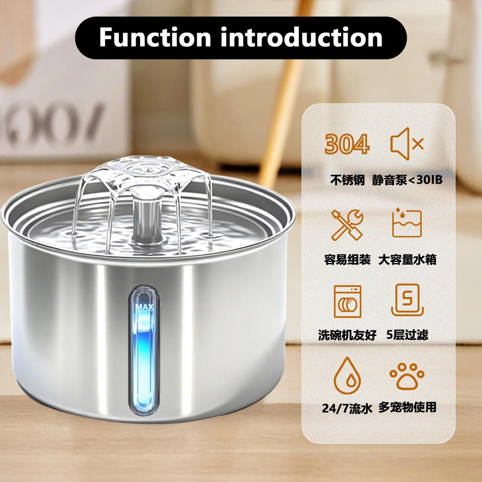เครื่องให้น้ำสัตว์เลี้ยงแบบเสียบปลั๊ก สแตนเลสใหม่ สำหรับสุนัขและแมว พร้อมระบบจ่ายน้ำอัตโนมัติ ดีไซน์อัจฉริยะและถอดประกอบได้