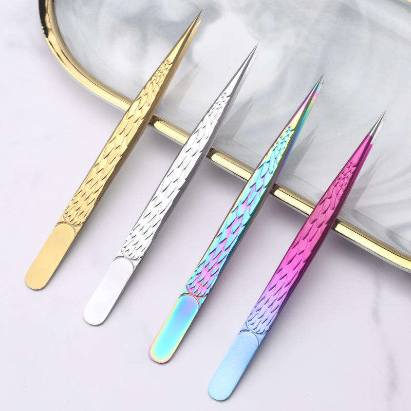 แหนบต่อขนตาสแตนเลสแบบมืออาชีพ สำหรับต่อขนตาปลอม ความแม่นยำสูง ทนทาน จับกระชับไม่ลื่น ขนาด 12-14 ซม.