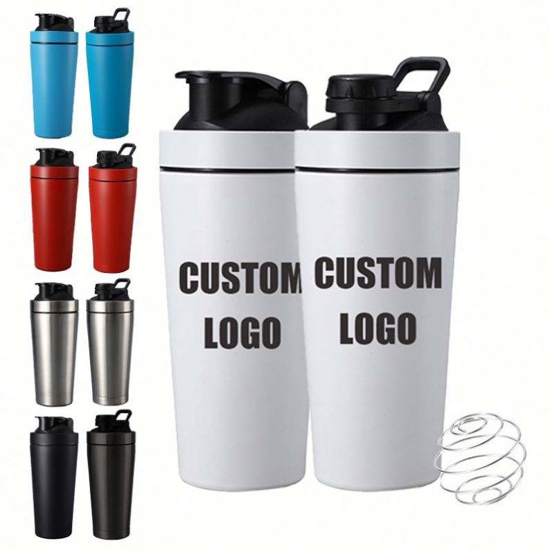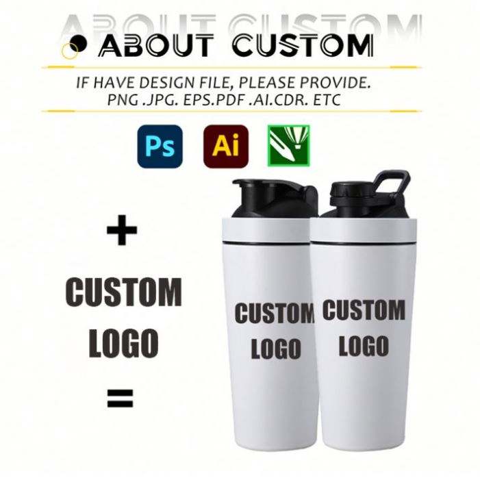 แก้วน้ำสแตนเลสแบบใหม่พร้อมสเกลวัดปริมาณ พกพาสะดวกสำหรับกิจกรรมกลางแจ้ง ออกกำลังกาย ขวดน้ำสำหรับโปรตีนหรือนมปั่น พร้อมโลโก้สั่งทำ