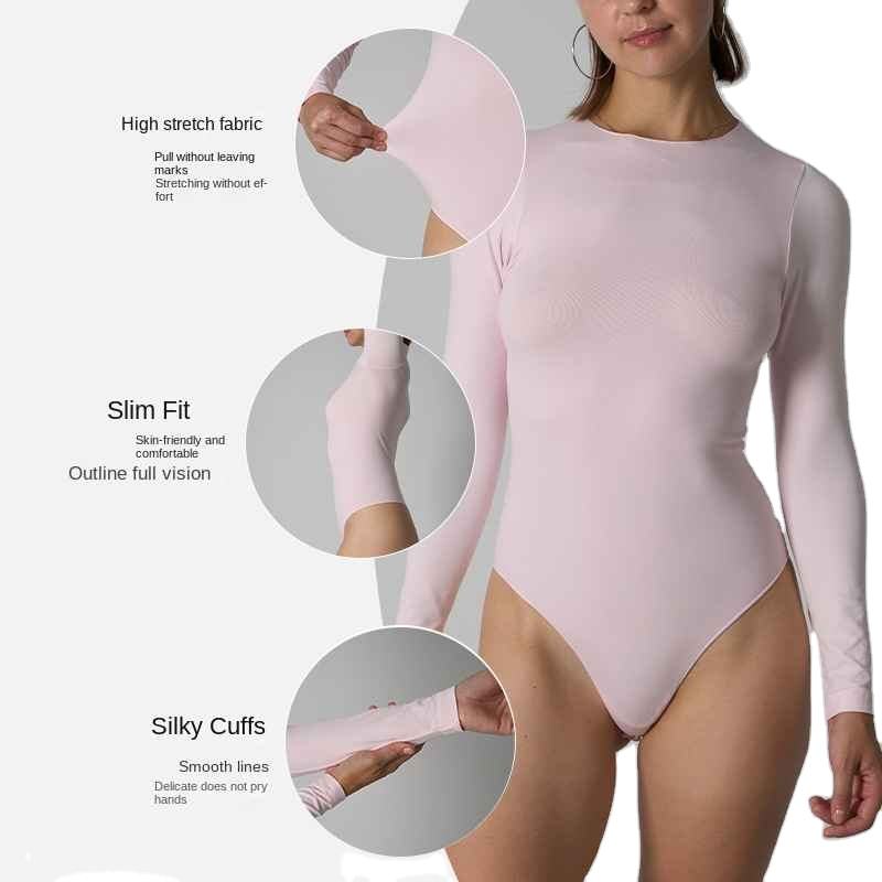 ชุดบอดี้สูทออกกำลังกายและฟิตเนสแขนยาว คอกลม ผ้าไนลอนคุณภาพมาตรฐานใหม่ สำหรับฤดูร้อน ไร้ตะเข็บ สำหรับผู้หญิง