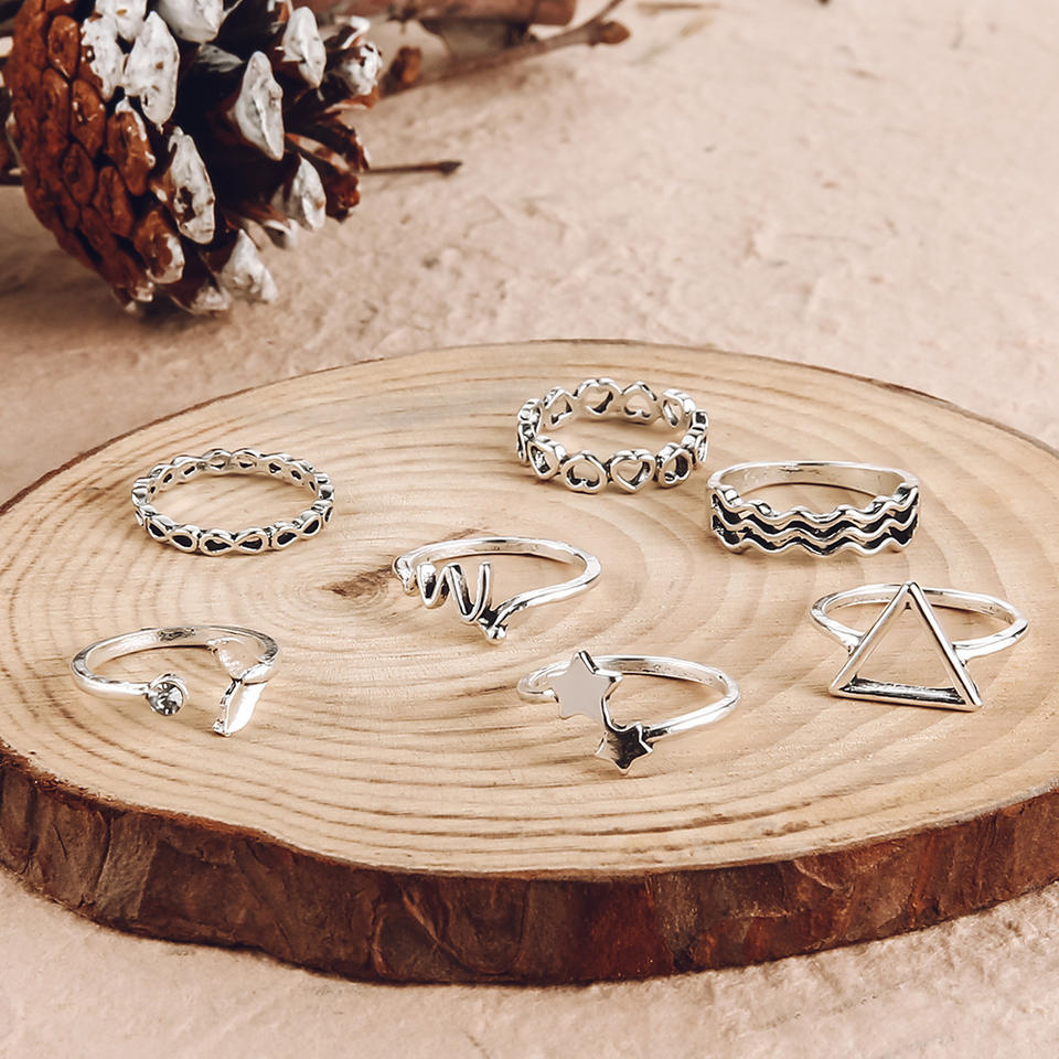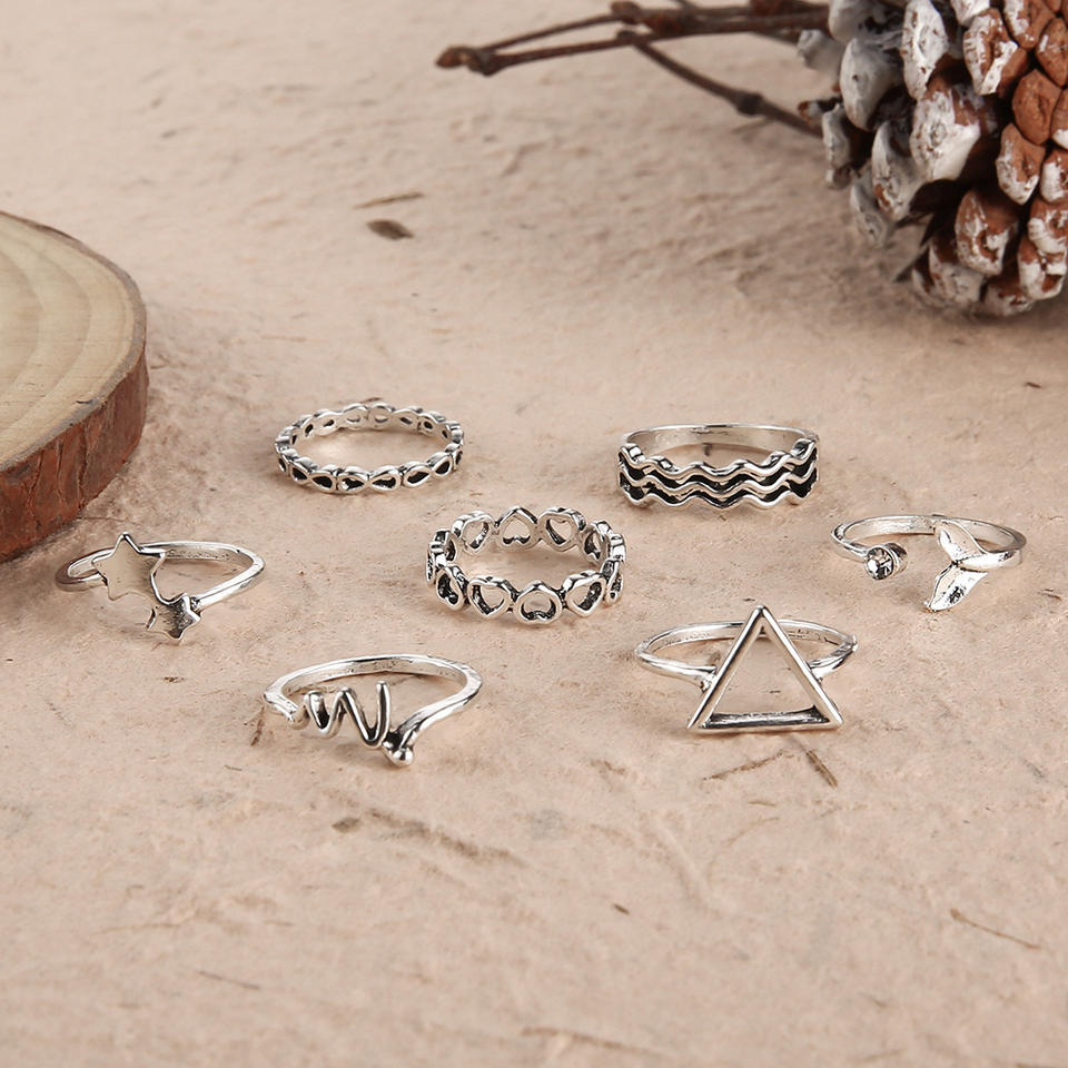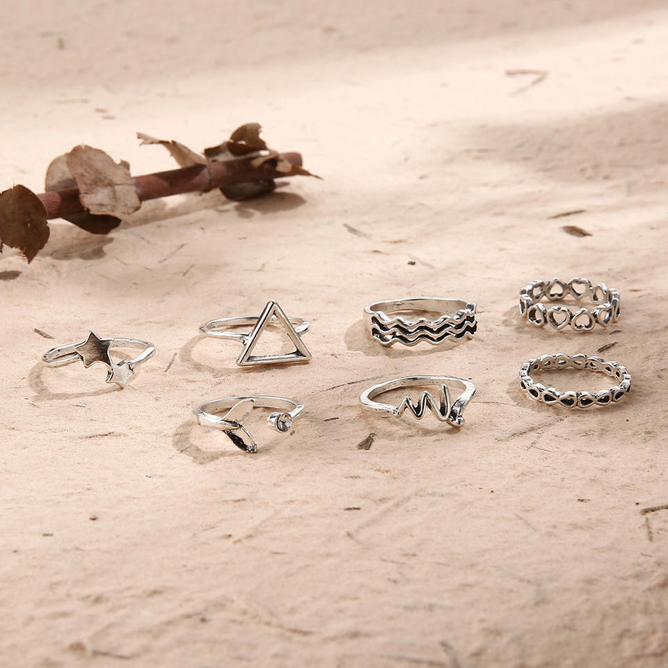 ใหม่แหวนโลหะรูปหางปลารูปดาวทรงสามเหลี่ยมเปิดกลวงเครื่องประดับขายส่ง