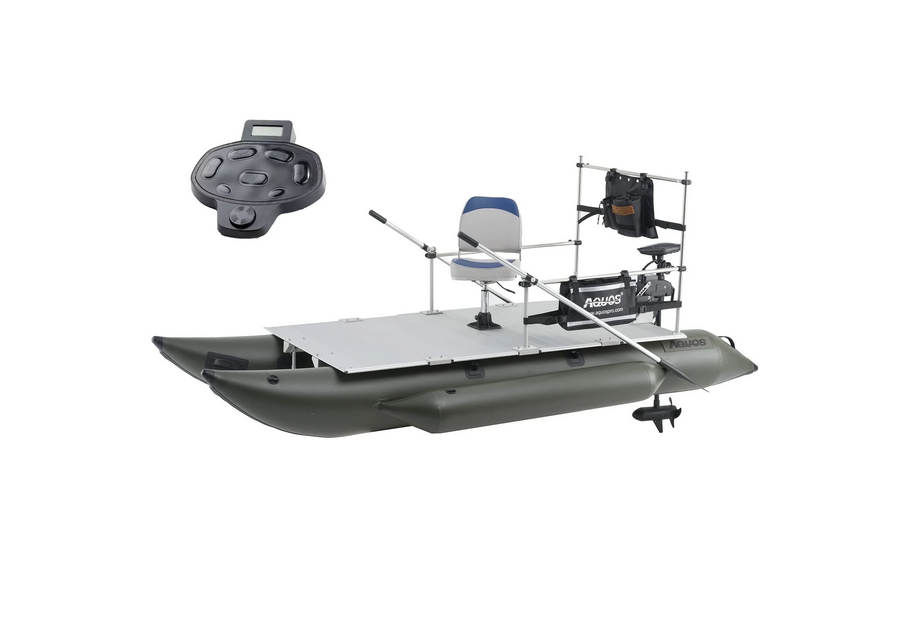 เรือยางเป่าลม AQUOS 8 ขนาด 8 ฟุต รุ่นใหม่ พร้อมมอเตอร์ทรอลลิ่งไร้สาย Haswing สีดำ 12V 55LBS ควบคุมด้วยรีโมท และระบบควบคุมเท้าไร้สาย 2.4G