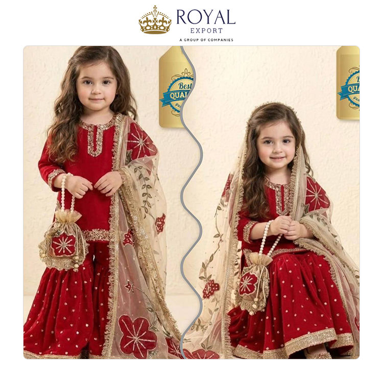สินค้าใหม่มาถึง! ชุดเด็กสไตล์อินเดียแบบดั้งเดิมที่ดีที่สุด ผ้าไหมเฟนดี้ปักลายสวยงาม ชุดชาราร่า ราคาประหยัด