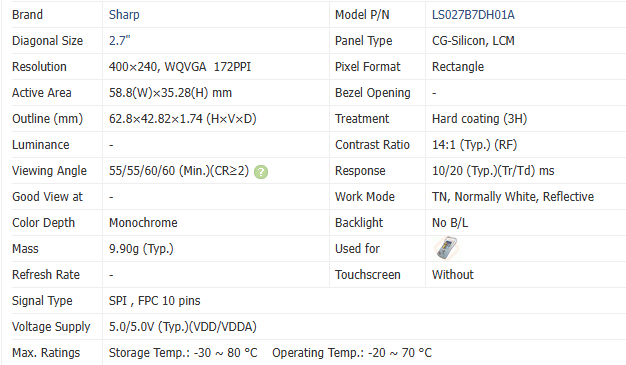 Interface:10 pins SPI , FPC