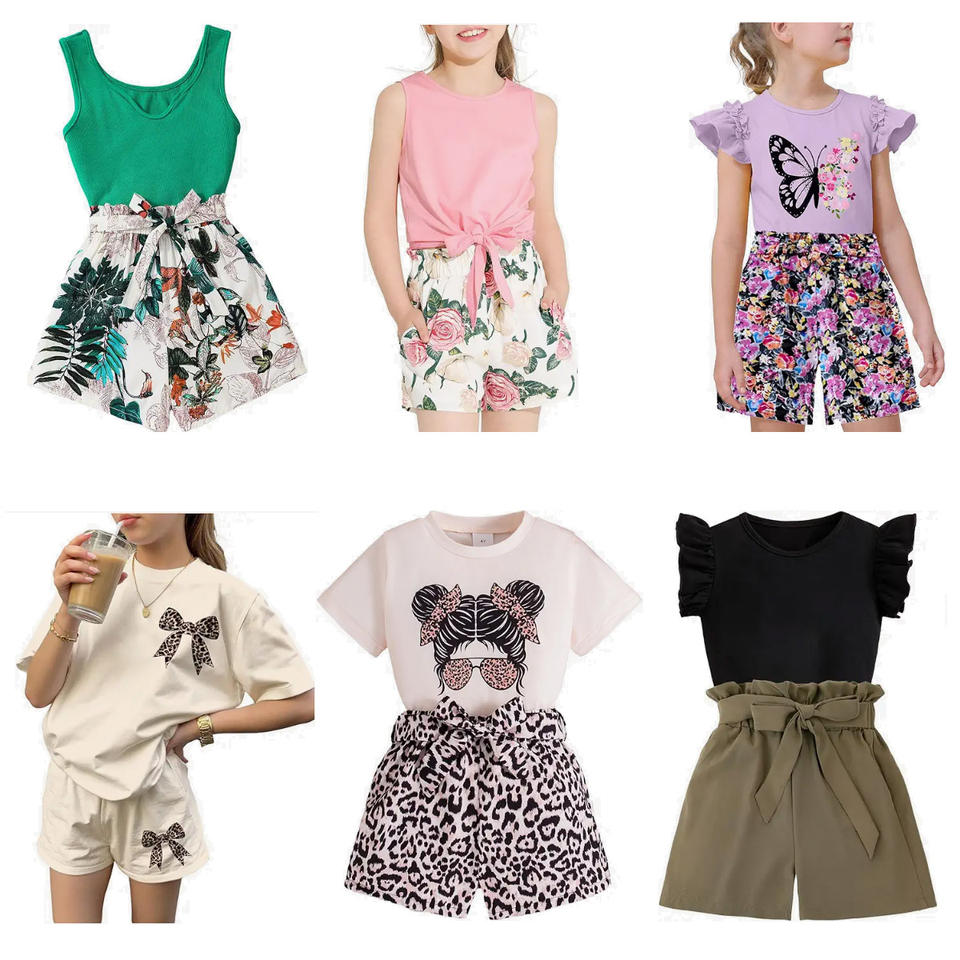 ชุดเสื้อผ้าแฟชั่นฤดูร้อนสำหรับเด็กแบบใหม่ พร้อมเสื้อยืดและชุดเดรสเจ้าหญิง
