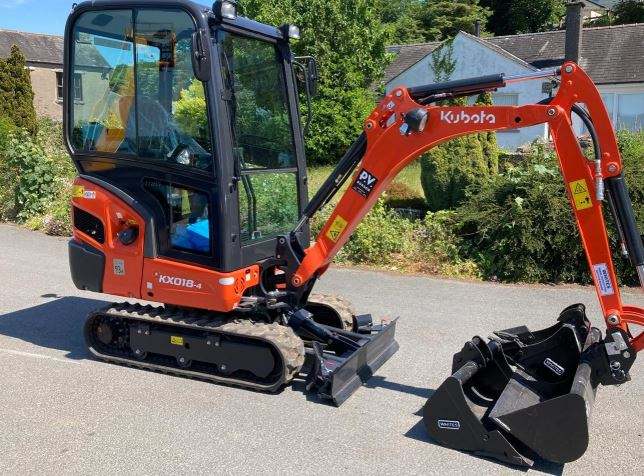 รถขุดขนาดเล็กคูโบต้ารุ่นใหม่ KX018-4 – น้ำหนัก: 3,748 ปอนด์, กำลังเครื่องยนต์: 16.1 แรงม้า