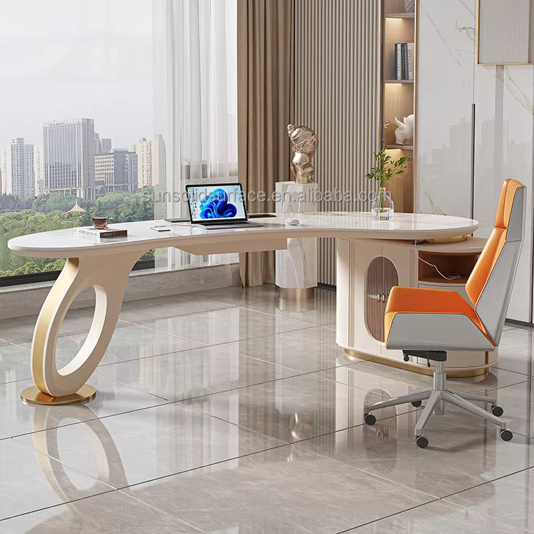 โต๊ะทำงานสำนักงานหินใหม่ เฟอร์นิเจอร์ทันสมัย หรูหรา สำหรับผู้บริหาร ซีอีโอ ผู้จัดการ ประธาน สำหรับสถาบันความงามทางการแพทย์