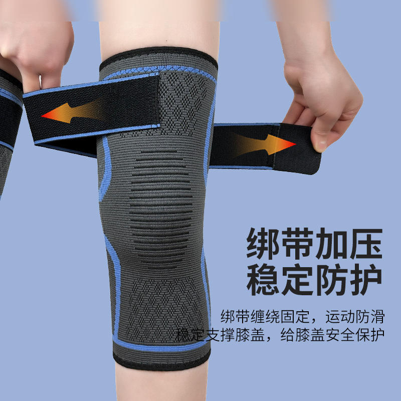 แผ่นรองเข่ากันลื่นแบบมีสายรัดใหม่สำหรับวิ่งกีฬาปั่นจักรยานบาสเกตบอลอุปกรณ์ป้องกันถักไนลอนแบบยูนิเซ็กส์ ฟิตสำหรับทุกเพศ