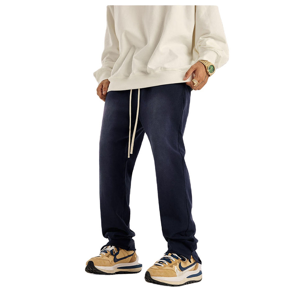กางเกงผ้าเทอร์รี่สำหรับผู้ชายกางเกงวิ่งแนวสตรีทพร้อมเชือกแนววินเทจใหม่