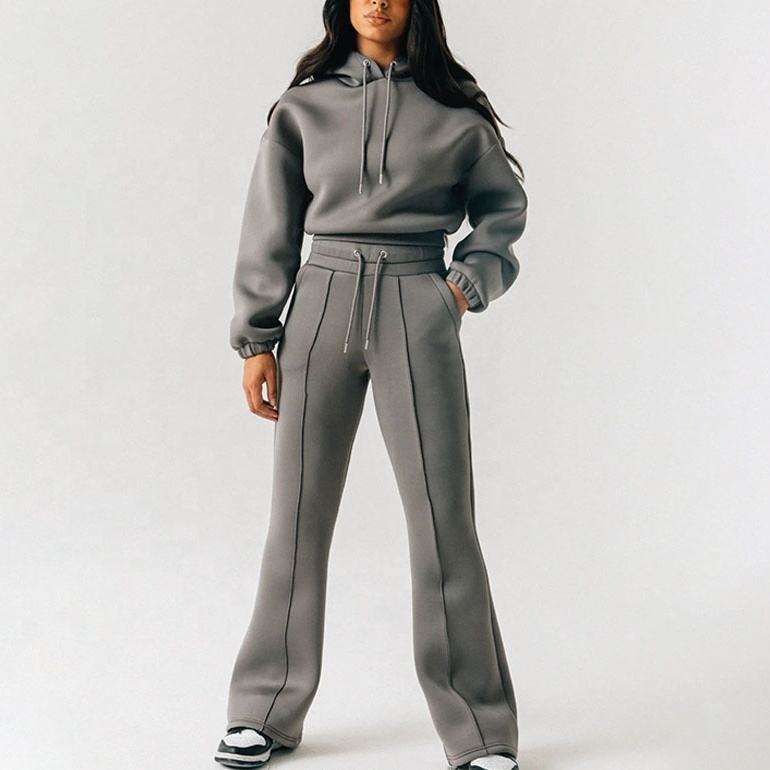 ชุดสเวตเตอร์และกางเกงสเวตเตอร์น้ำหนักเบาสำหรับผู้หญิงสไตล์สตรีทใหม่พร้อมโลโก้ที่กำหนดเอง