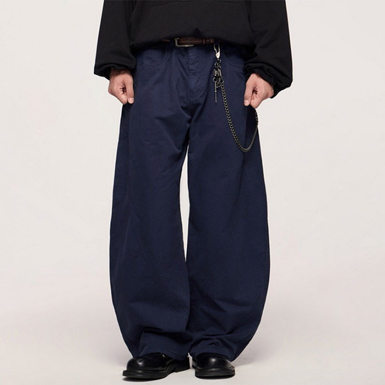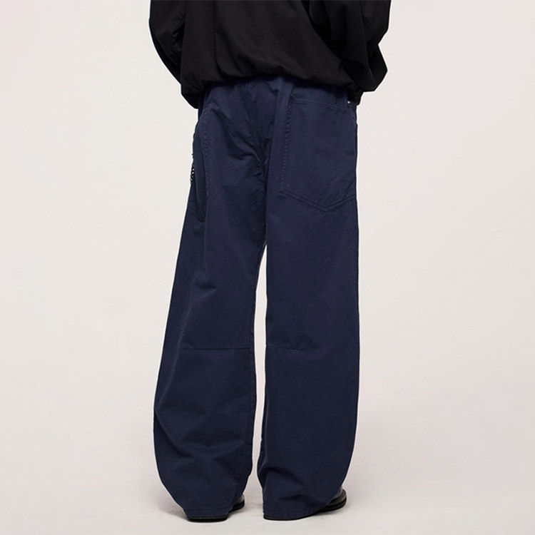 กางเกงคาร์โก้ผู้ชายทรงโอเวอร์ไซส์ สไตล์สตรีทแวร์ สีพื้น ผ้าฝ้ายพาราชูท ทรงขาบาน ใส่สบาย