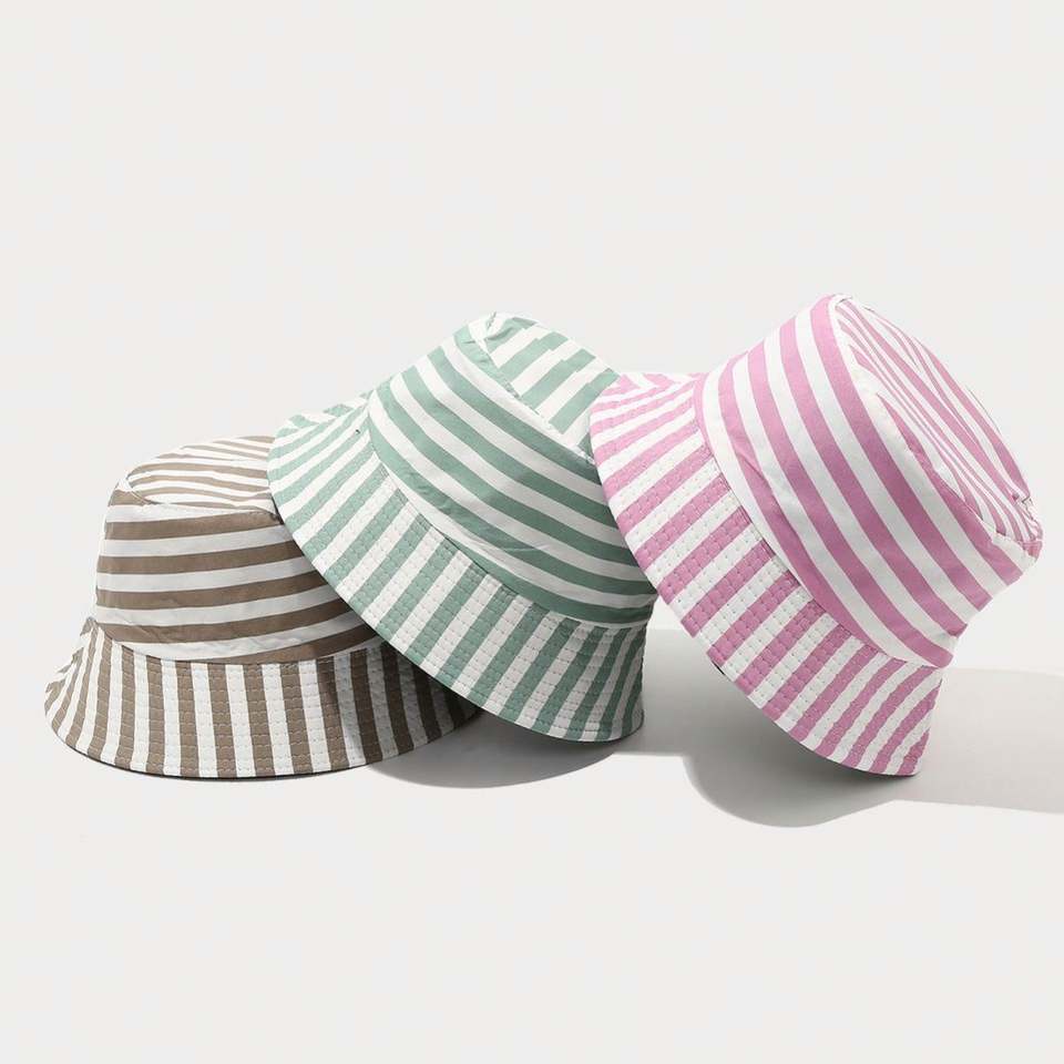 หมวกบักเก็ตสปริงซัมเมอร์ลายทางใหม่สำหรับเด็กผู้หญิง หมวกบักเก็ตกันแดดสำหรับกิจกรรมกลางแจ้ง