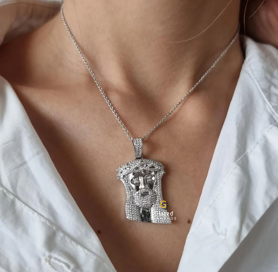 925งานปาร์ตี้ชุบโรเดียมทำจากเพชรรูปใบหน้าพระเยซูทรงฮิปฮอปแบบใหม่สวยงามไร้สี