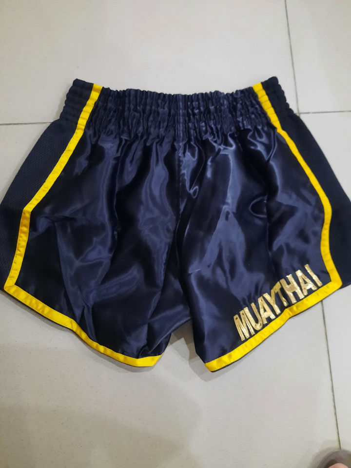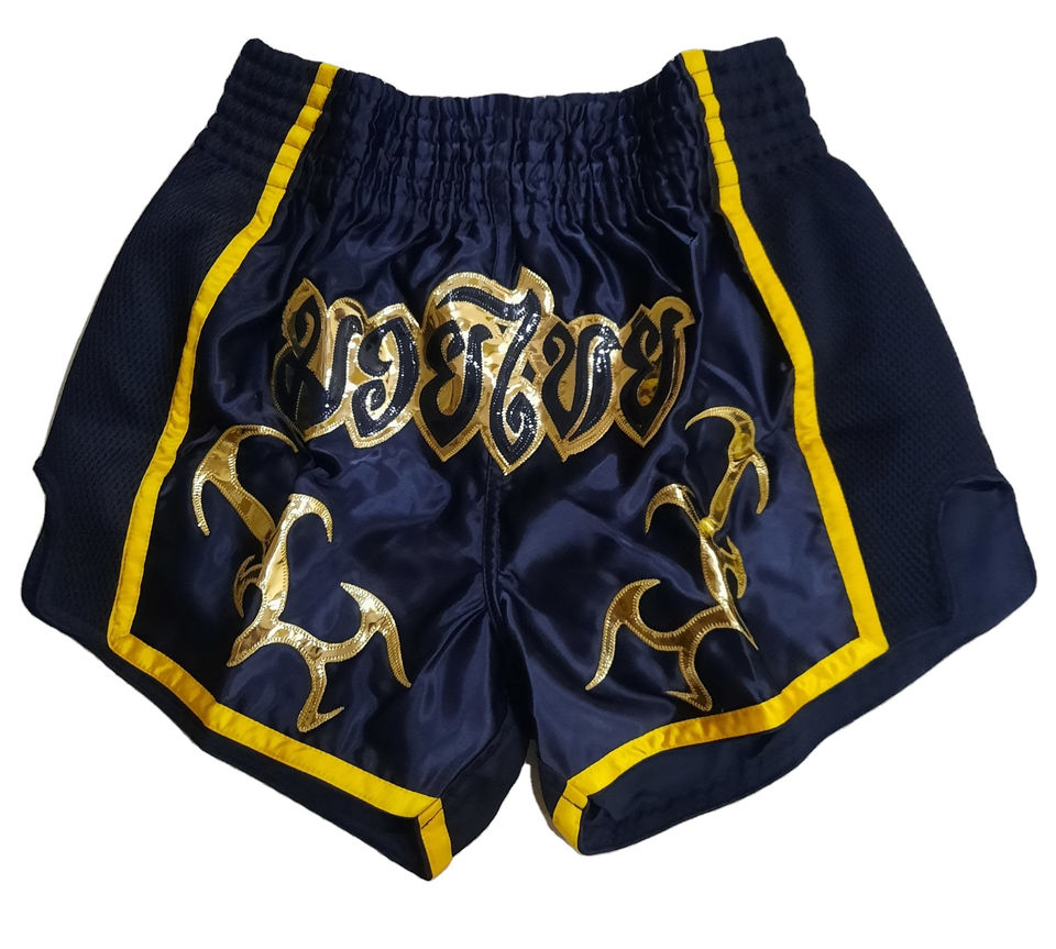 กางเกงขาสั้นแบบไทยกางเกงมวยไทยขาสั้นแบบใหม่ทำจากโพลีเอสเตอร์100% ออกแบบได้ตามต้องการและโลโก้แบบสั่งตัด