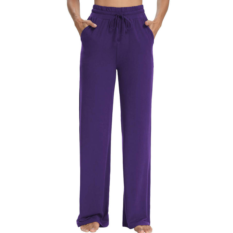 กางเกงวอร์มขาบานทรงใหม่ปี 2026 ผ้าหนานุ่ม คุณภาพสูง เอวยางยืดพร้อมเชือกผูก สีพื้น สำหรับผู้หญิง