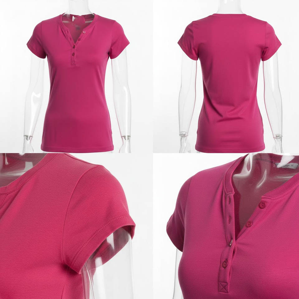 เสื้อยืดสไตล์ใหม่ประจำปี 2026 เสื้อยืดผู้หญิงแบบพื้นฐาน ใส่สบายๆ คอเฮนลีย์ ระบายอากาศได้ดี แขนสั้น เสื้อผู้หญิงสำหรับฤดูร้อน