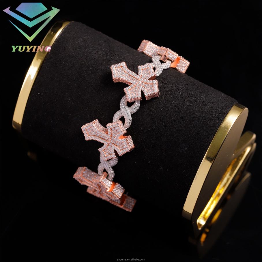 สร้อยข้อมือแบบใหม่ 26 มม. ลายกากบาท เงินแท้ S925 ประดับเพชรโมอิสซาไนต์สีขาว/โรสโกลด์ เครื่องประดับแฟชั่น สร้อยข้อมือแบบอินฟินิตี้