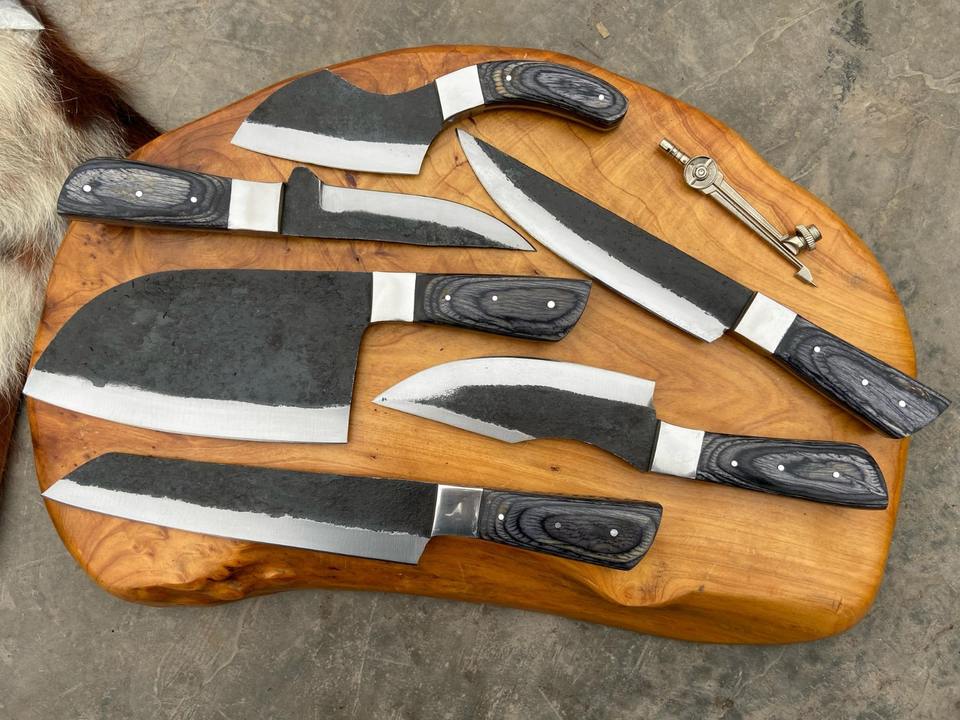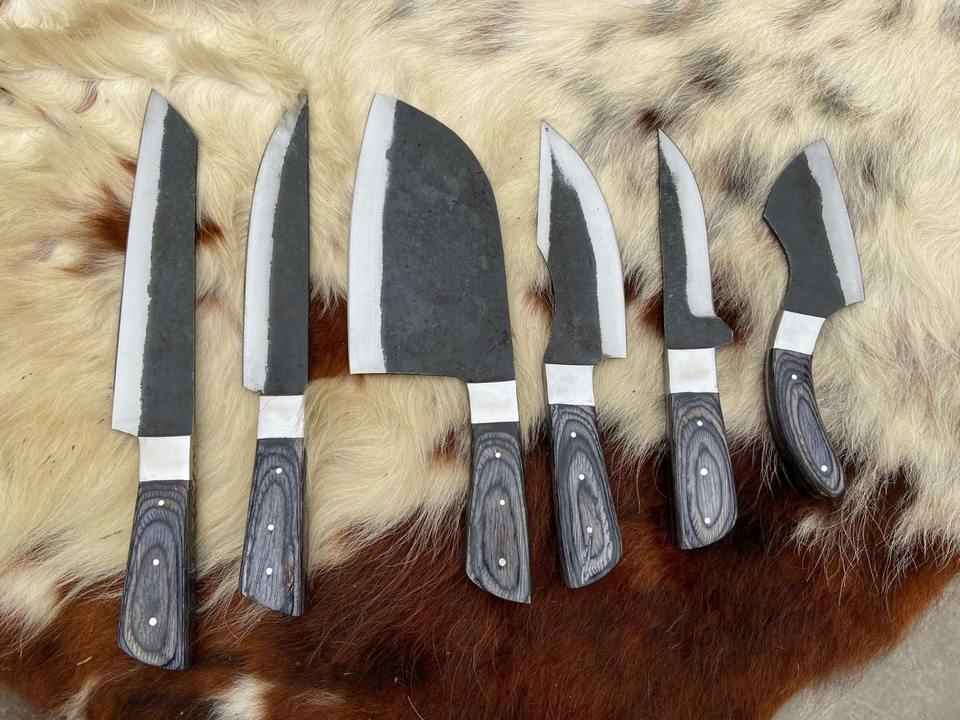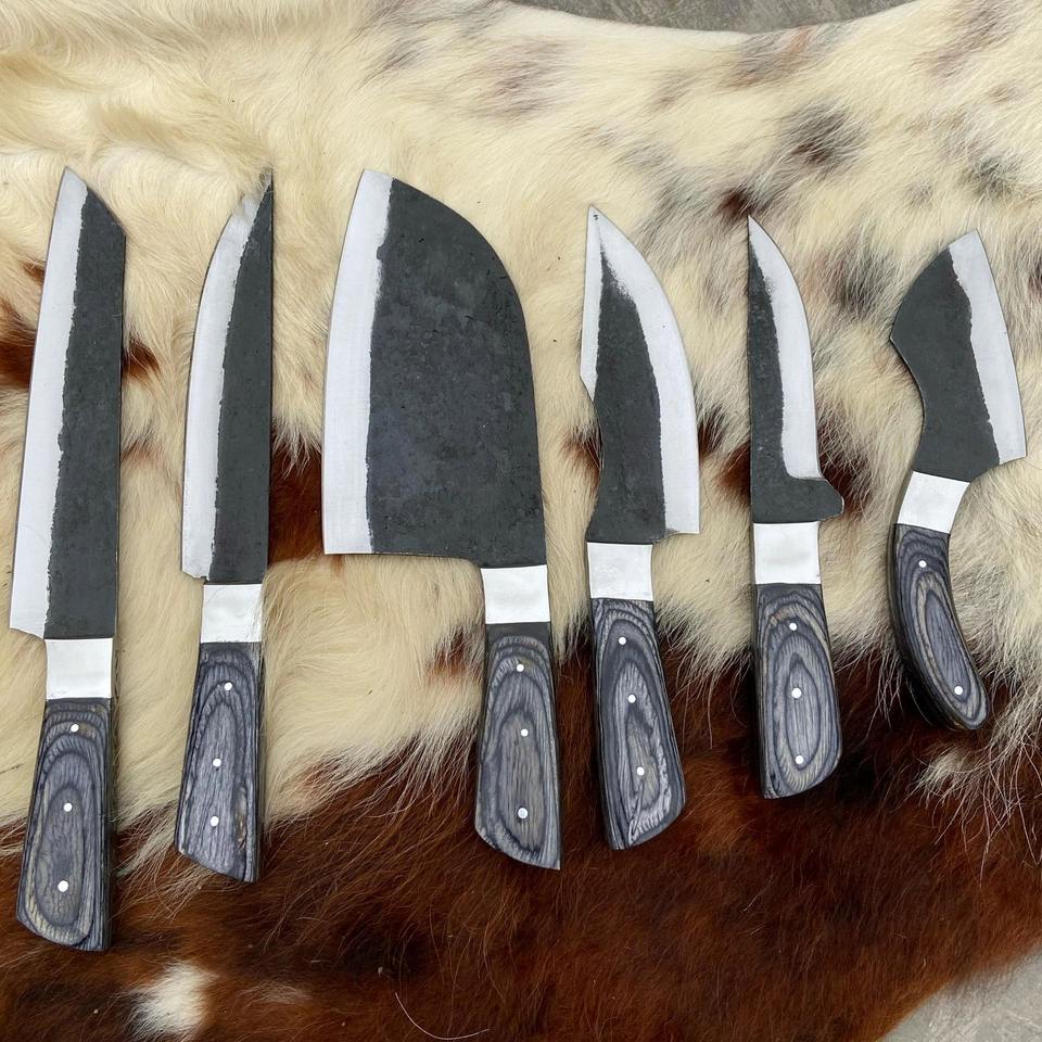 ชุดมีดเชฟ 6 ชิ้น สไตล์ใหม่ ทำจากเหล็กกล้าไร้สนิม ดามัสกัส พร้อมด้ามไม้และใบมีดเหล็กกล้าคาร์บอน