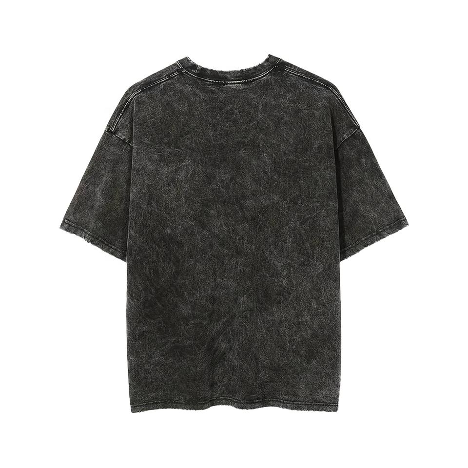 เสื้อยืดสตรีทแวร์ผู้ชายพิมพ์ลายสติ๊กเกอร์ DTF แบบสั่งทำพิเศษ ทรงโอเวอร์ไซส์ ล้างสีแบบแอซิดวอช สไตล์ใหม่