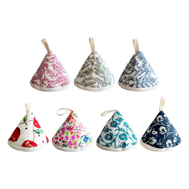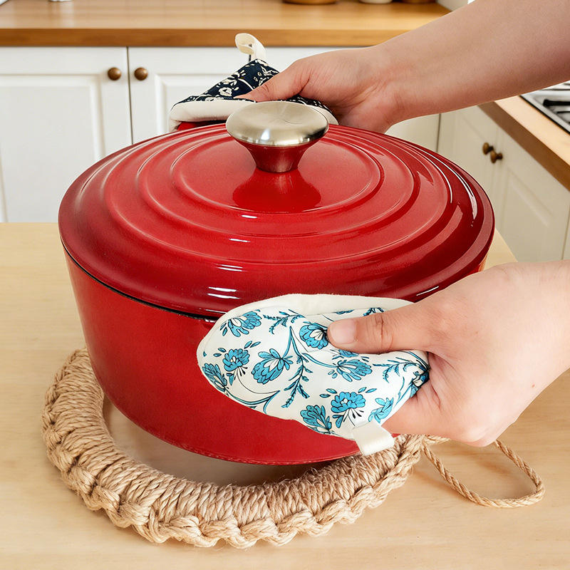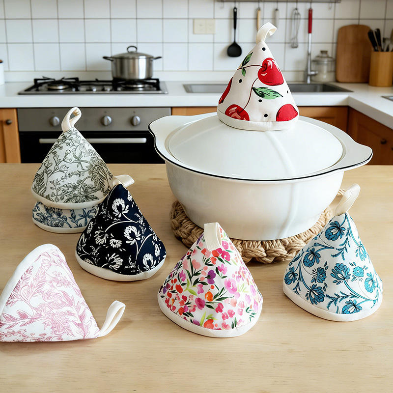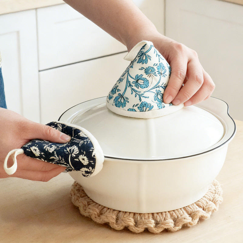 ฝาปิดหม้อป้องกันน้ำร้อนลวกแบบใหม่ ถุงมือกันความร้อนแบบหนาพร้อมลวดลายดอกไม้สำหรับใช้ในครัว