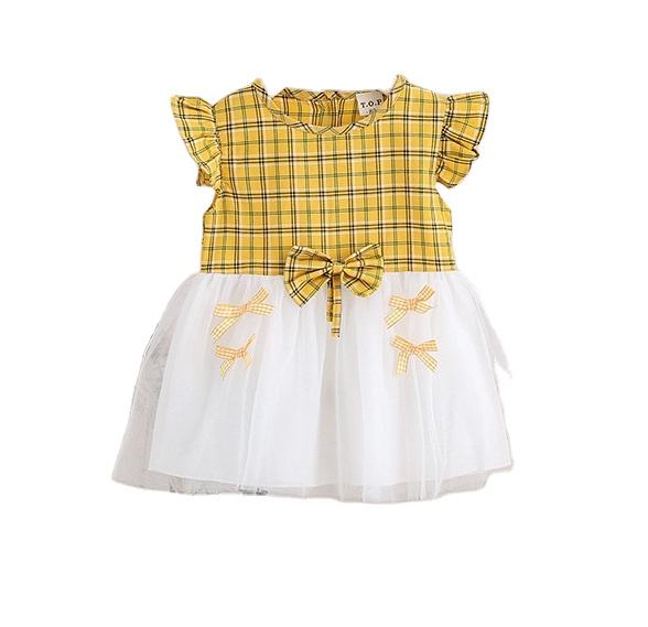 ชุดเดรสเจ้าหญิงเด็กผู้หญิงแบบใหม่ สวยงาม คุณภาพสูง คอทรงโอ ดีไซน์แขนกลีบดอกไม้แบบกระโปรงบัลเลต์
