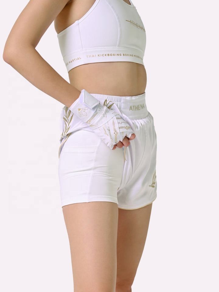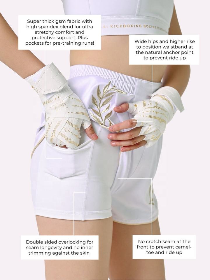 กางเกงมวยไทยคิกบ็อกซิ่ง MMA แบบใหม่ สไตล์คัสตอม สีขาว น้ำหนักเบา ระบายอากาศได้ดี ผลิตจากโพลีเอสเตอร์ 100% สำหรับเด็ก ผู้ชาย ผู้หญิง ทุกขนาด