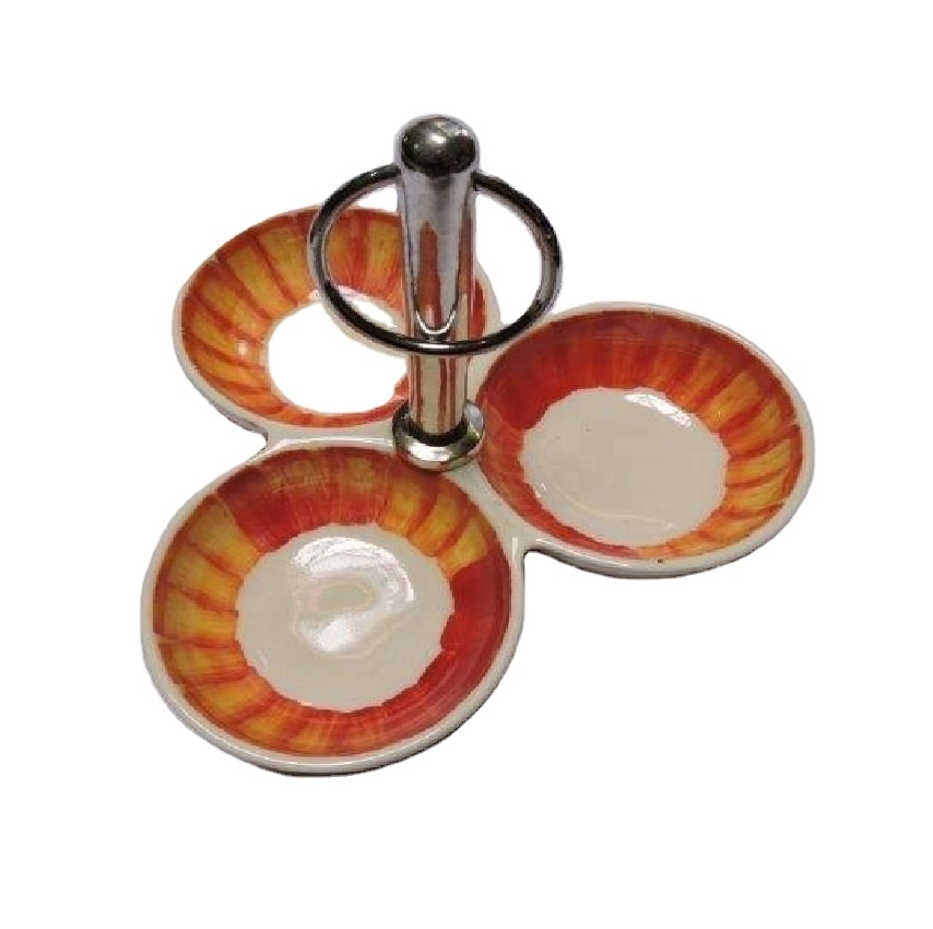 ชามสำหรับตกแต่งบุฟเฟ่ต์ทรงแตรทรงกลม3ชิ้นถ้วยเสิร์ฟอาหารแบบรวดเร็วสำหรับร้านอาหาร