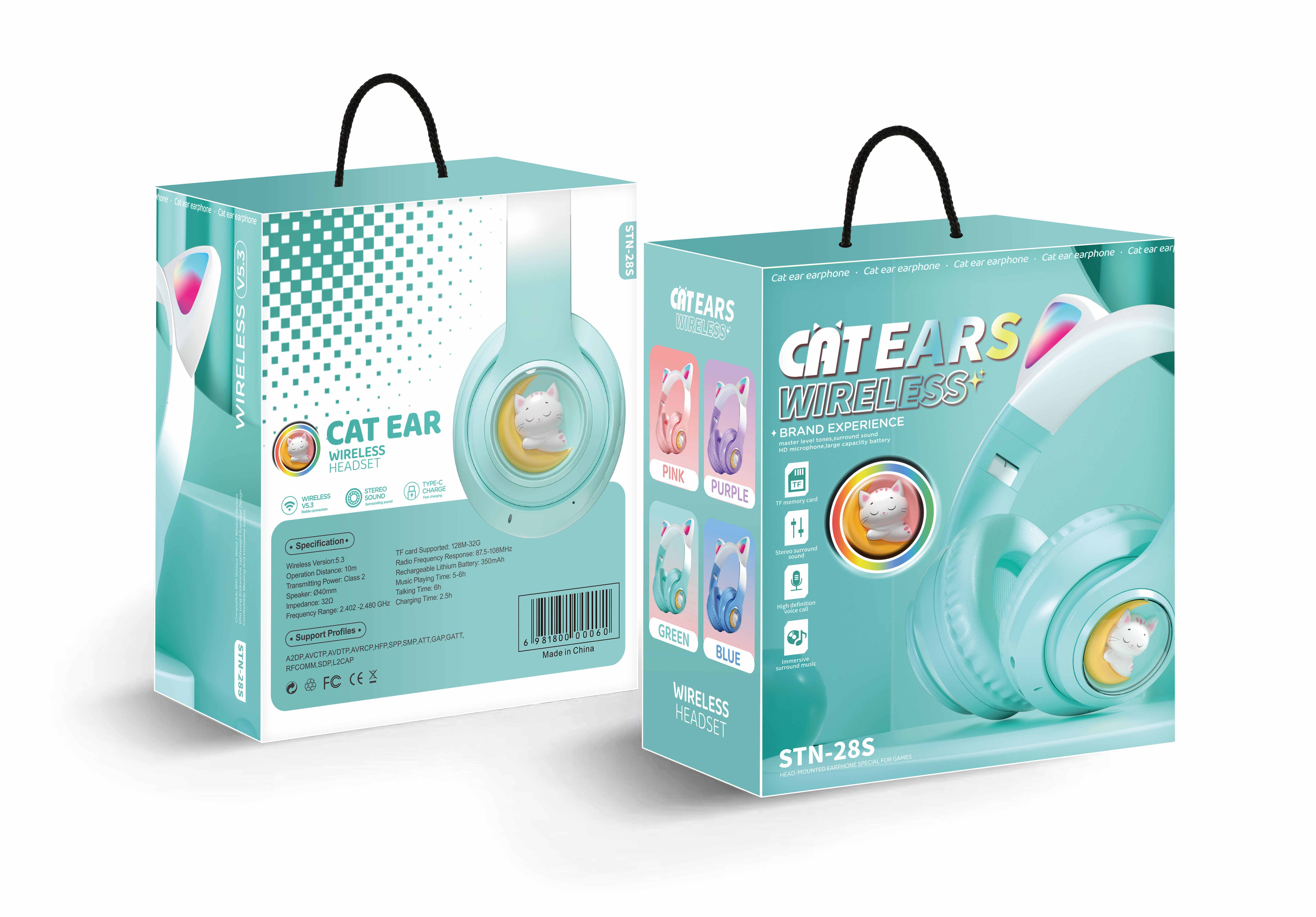 หูฟังสำหรับเล่นเกมหูแมวรูปแบบใหม่หูฟังบลูทูธไร้สายที่น่ารัก5.3โหมดส่วนตัวพร้อมไฟสีสันสดใสสำหรับเด็กผู้หญิงและเด็ก