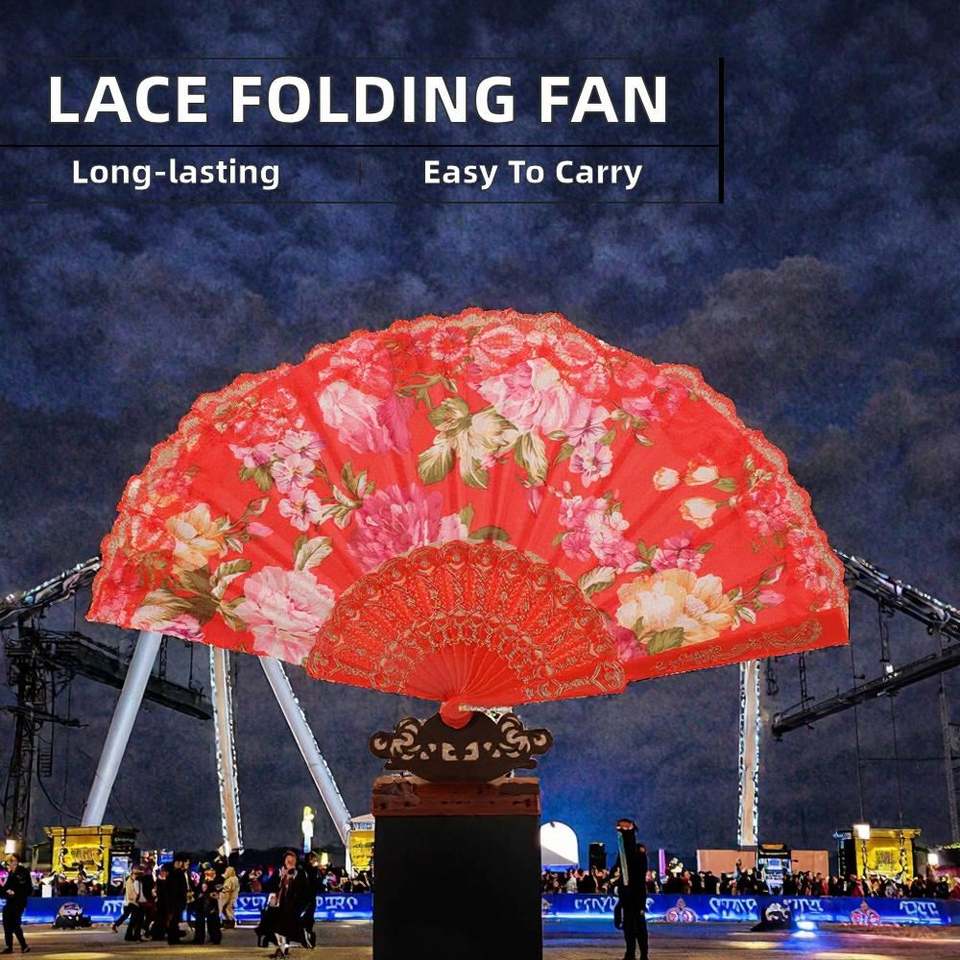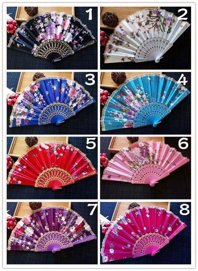 พัดจีนแบบพับได้ลายลูกไม้ ของชำร่วยงานแต่งงาน พัดพลาสติกสำหรับตกแต่งงานพรอม งานฝีมือพลาสติกทำมือ