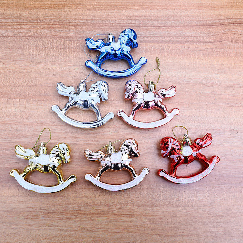ของขวัญคริสต์มาสแบบใหม่ ม้าโยกพลาสติกเคลือบเงาขนาดเล็ก ของตกแต่งต้นคริสต์มาสแบบแขวน ของขวัญขนาดเล็ก