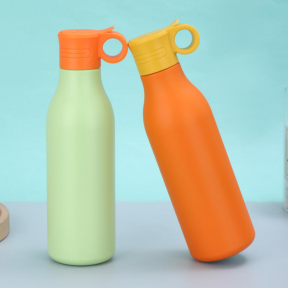 ขวดน้ำสแตนเลสสีสันสดใส550มล. พร้อมฝาหลอดแบบพับได้สำหรับเล่นกีฬา